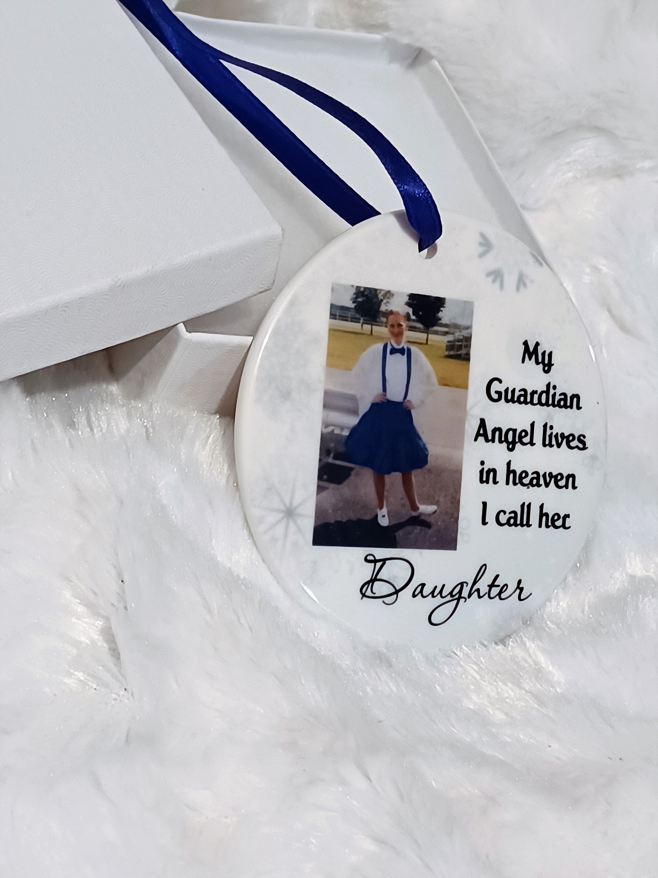 Let us help you with a special ornament. We can put a picture, date, or other graphics. We want to help make this a special ornament.