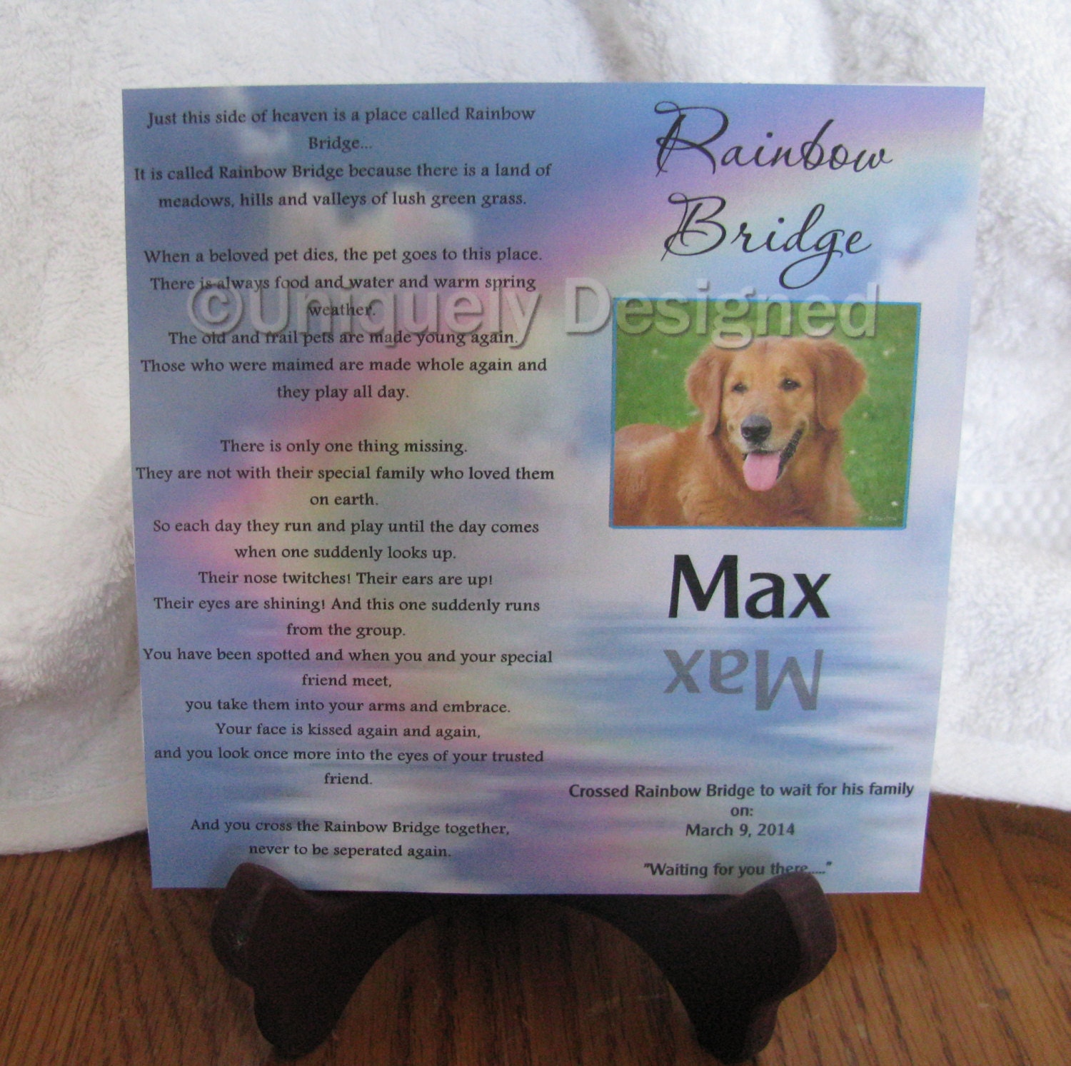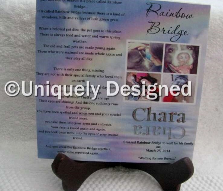 We know what its like to have a pet cross the Rainbow Bridge. We've been there ourselves. And we hope to bring you some comfort by offering this special item.
