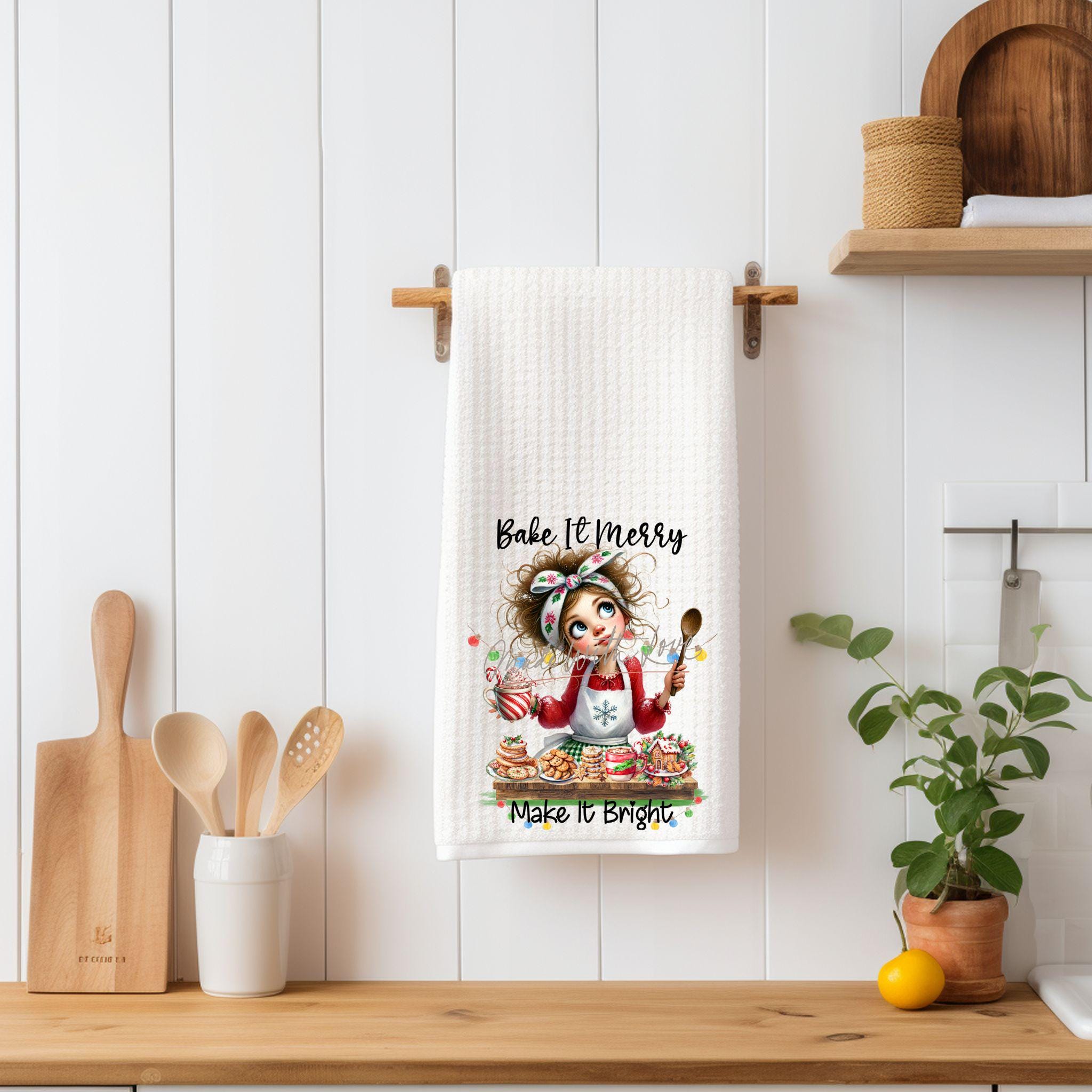 “Bake It Merry, Make It Bright” Christmas Waffle Kitchen Towel 🎄