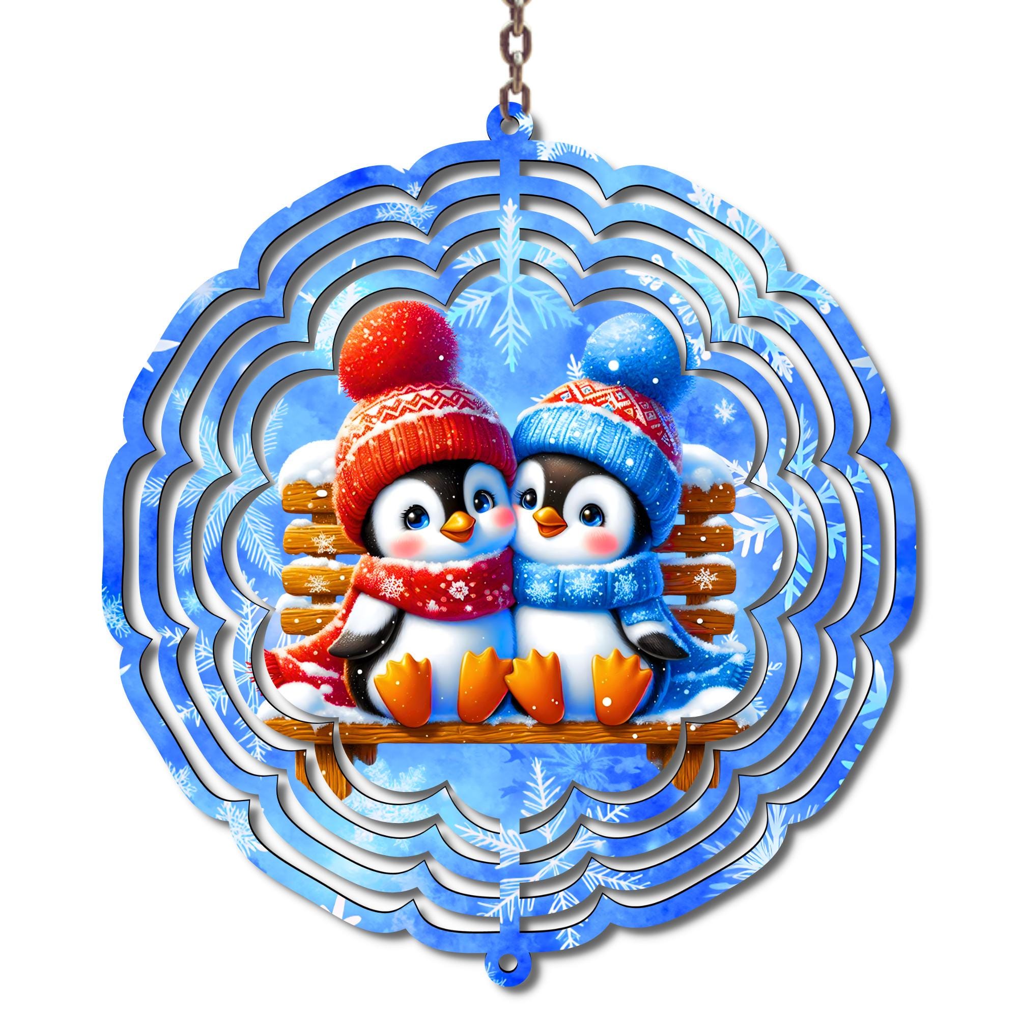 Bring cozy winter charm to your porch, garden, or indoor space with this adorable Penguin Couple Wind Spinner. Featuring two sweet penguins bundled up in red and blue winter hats and scarves, this 10-inch metal spinner captures the magic of love, warmth, and snowy days.