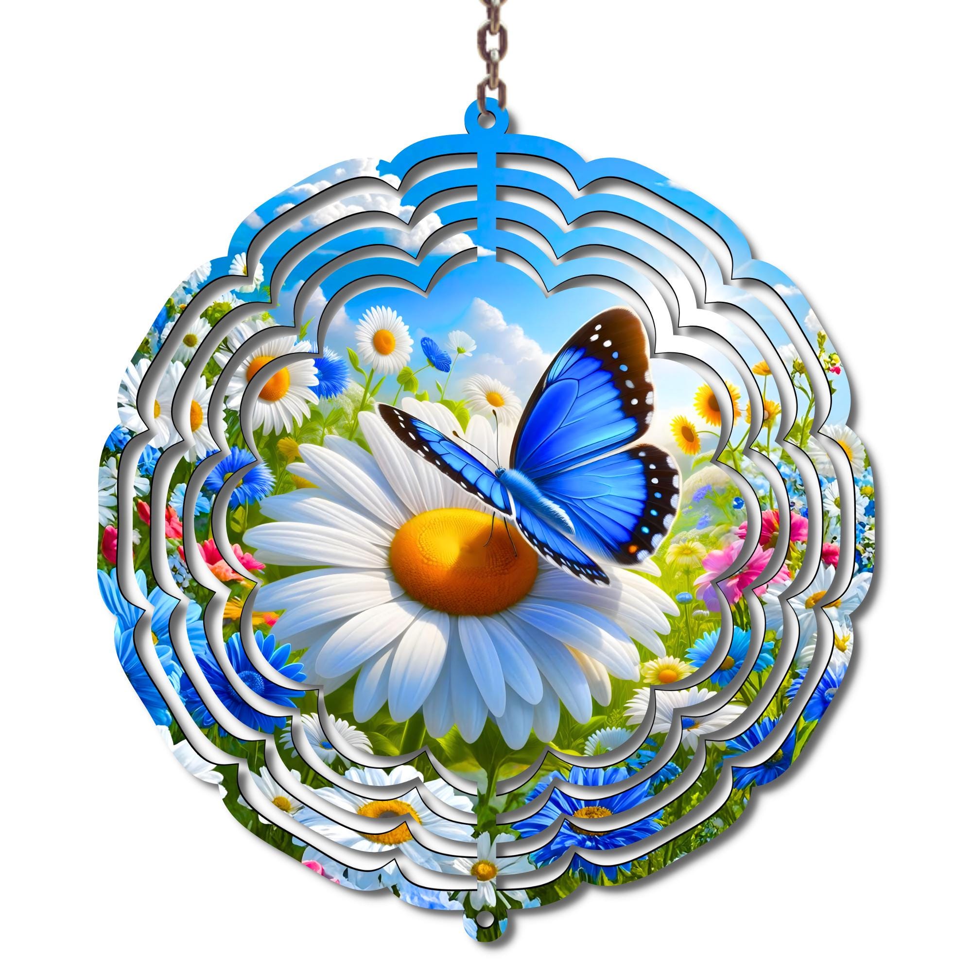 Bring beauty, peace, and gentle motion to your outdoor space with this stunning 10-inch Blue Butterfly Wind Spinner. Featuring a vibrant blue butterfly resting on a bright white daisy, surrounded by cheerful spring flowers and a blue sky backdrop, this design captures the feeling of renewal, hope, and calm.