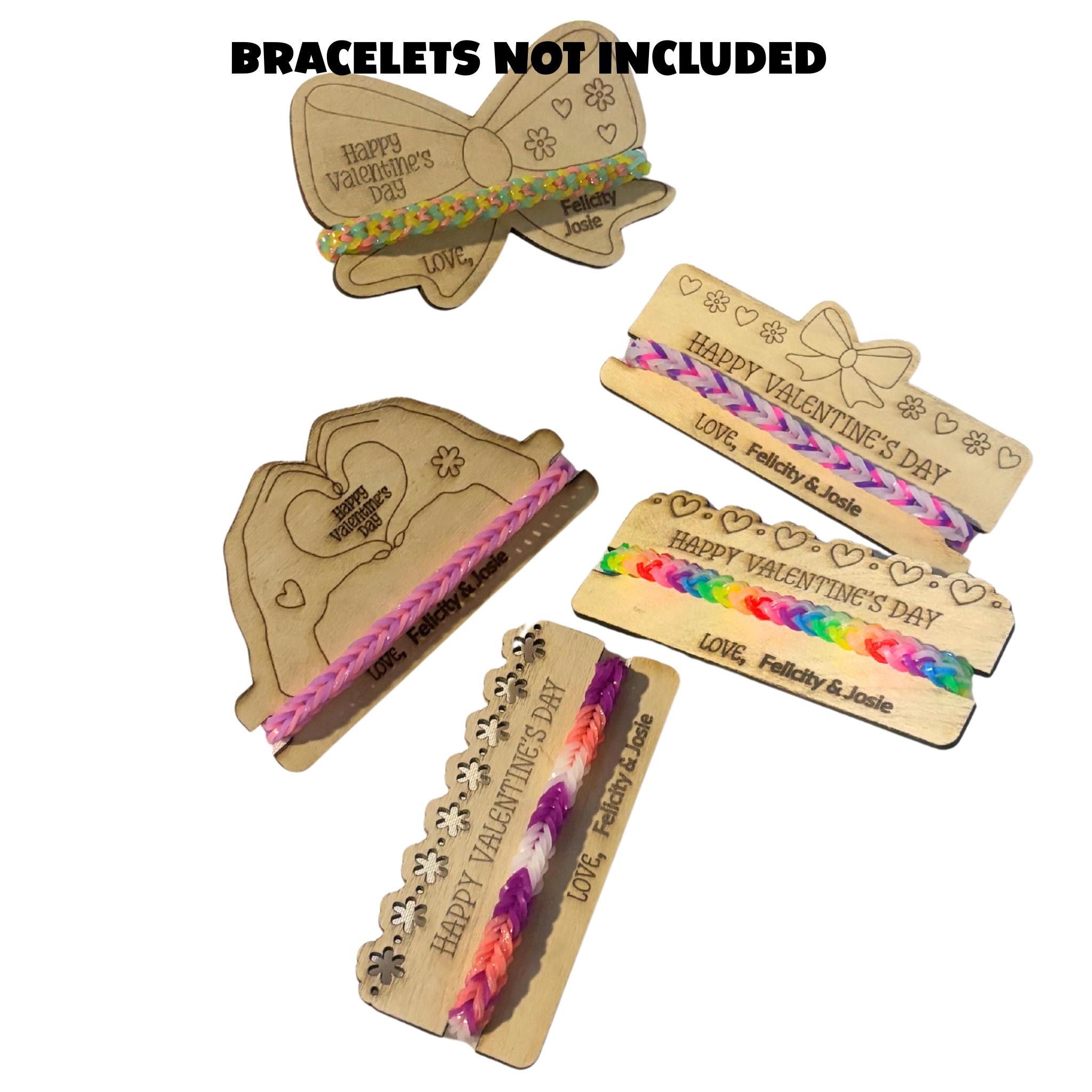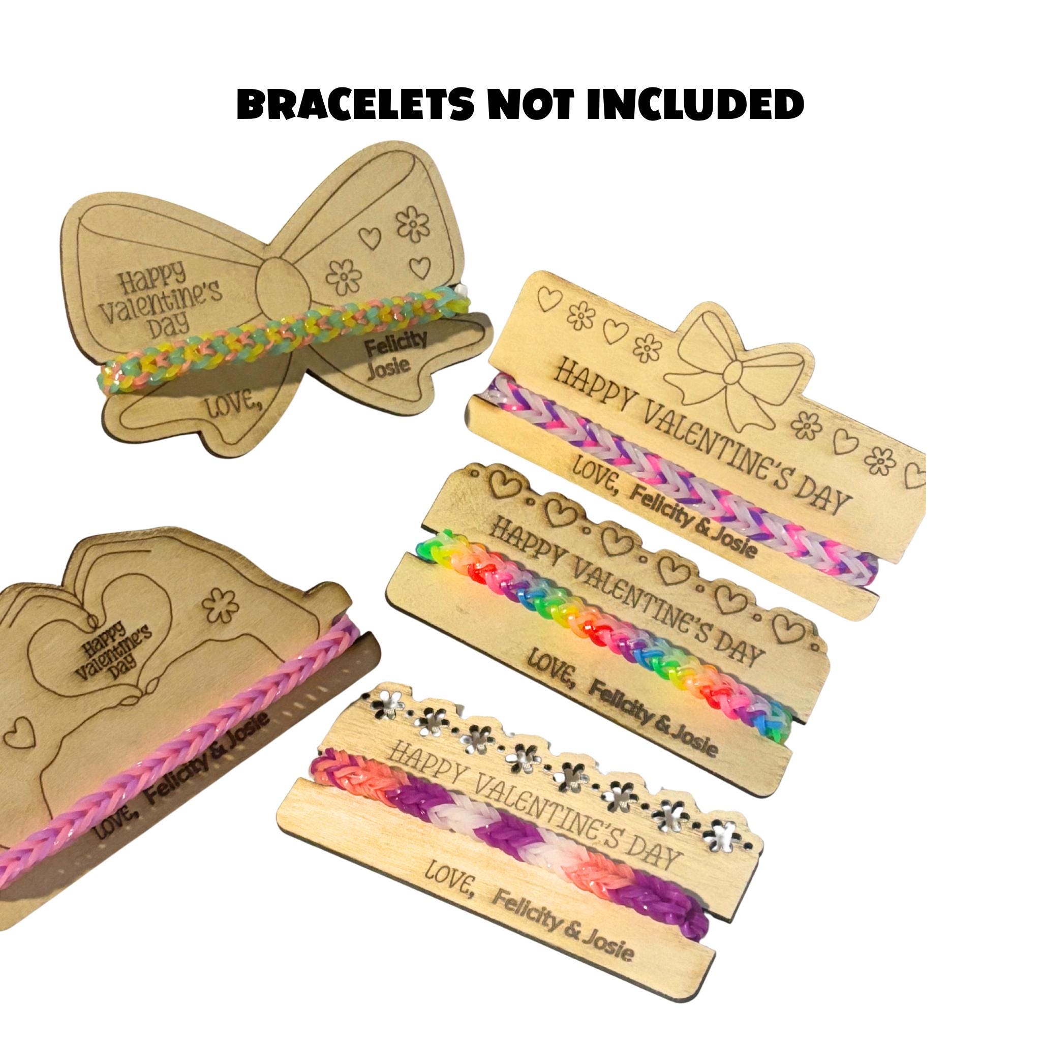 Add a sweet handmade touch to classroom Valentines with these wooden bracelet holder Valentines. Each one is laser-engraved with a Valentine message and designed to hold a friendship-style bracelet so kids can gift something fun to friends or classmates.