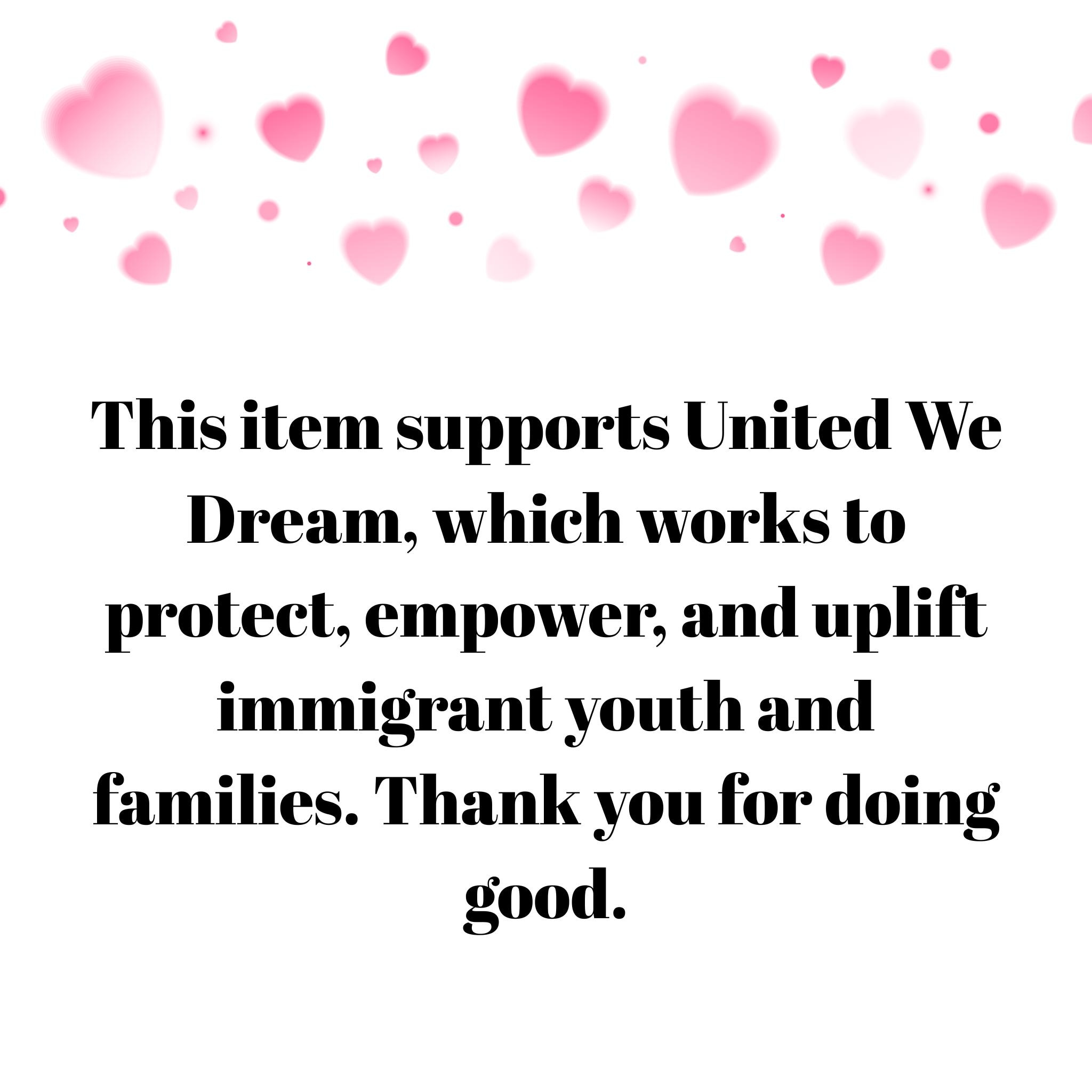 Proceeds from this button will be donated to United We Dream, an organization that supports immigrant youth and families through advocacy, education, and community action.