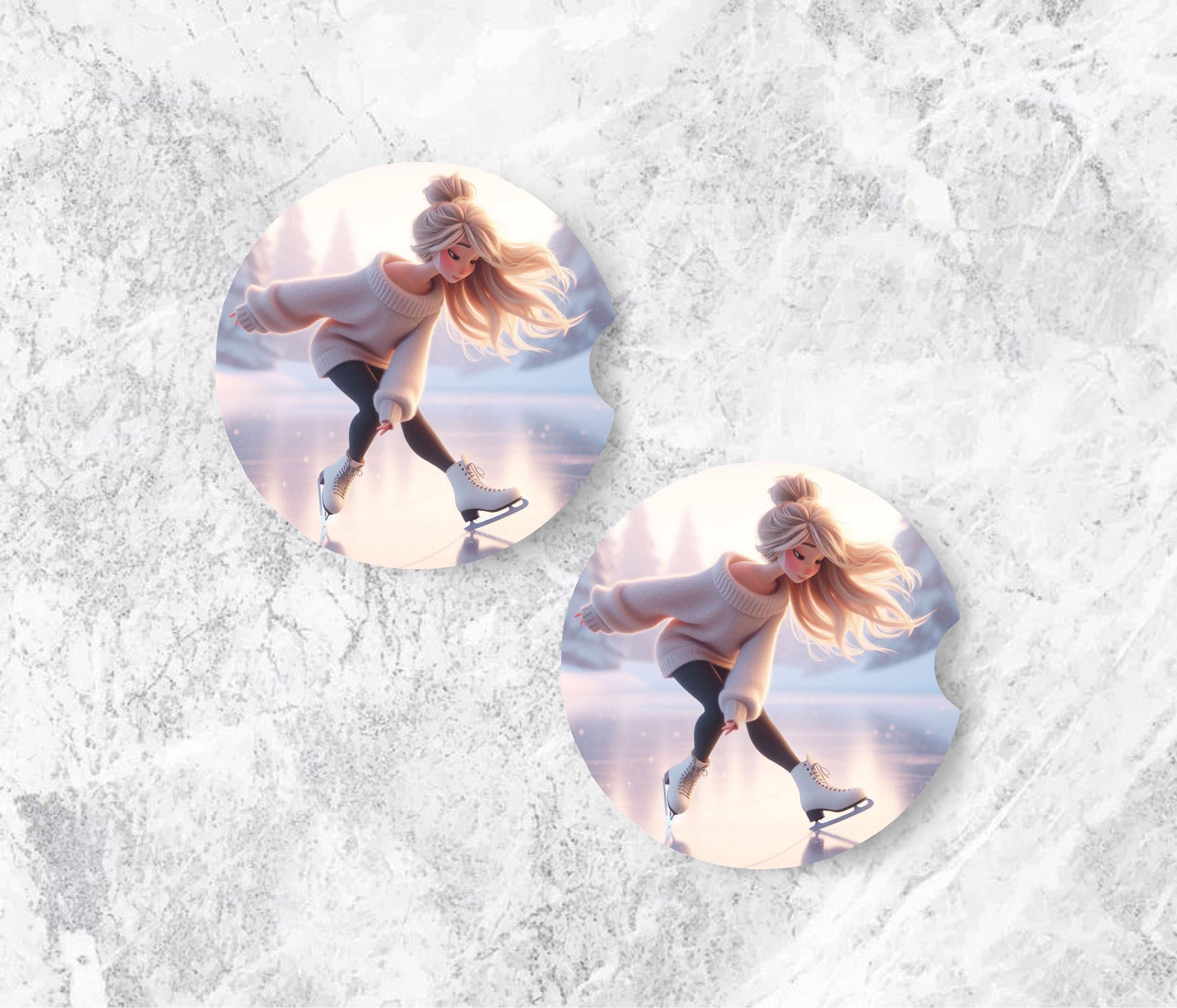 Add a little grace and glide to your car with these figure skating themed car coasters, available in two beautiful skater designs. Each set includes 2 absorbent car coasters featuring a dreamy ice skating illustration, perfect for figure skaters, skating moms, coaches, and winter sports lovers.