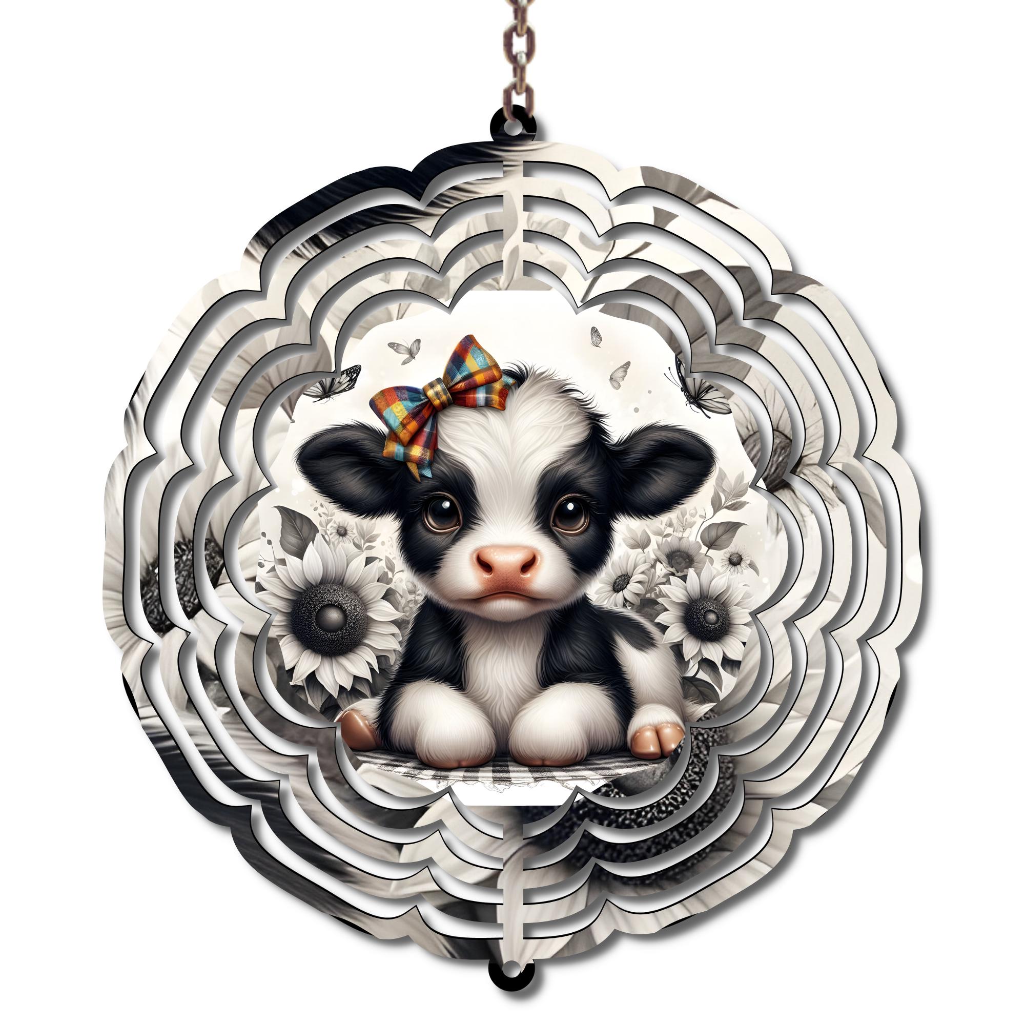 Add a sweet and charming touch to your space with this adorable baby cow wind spinner.