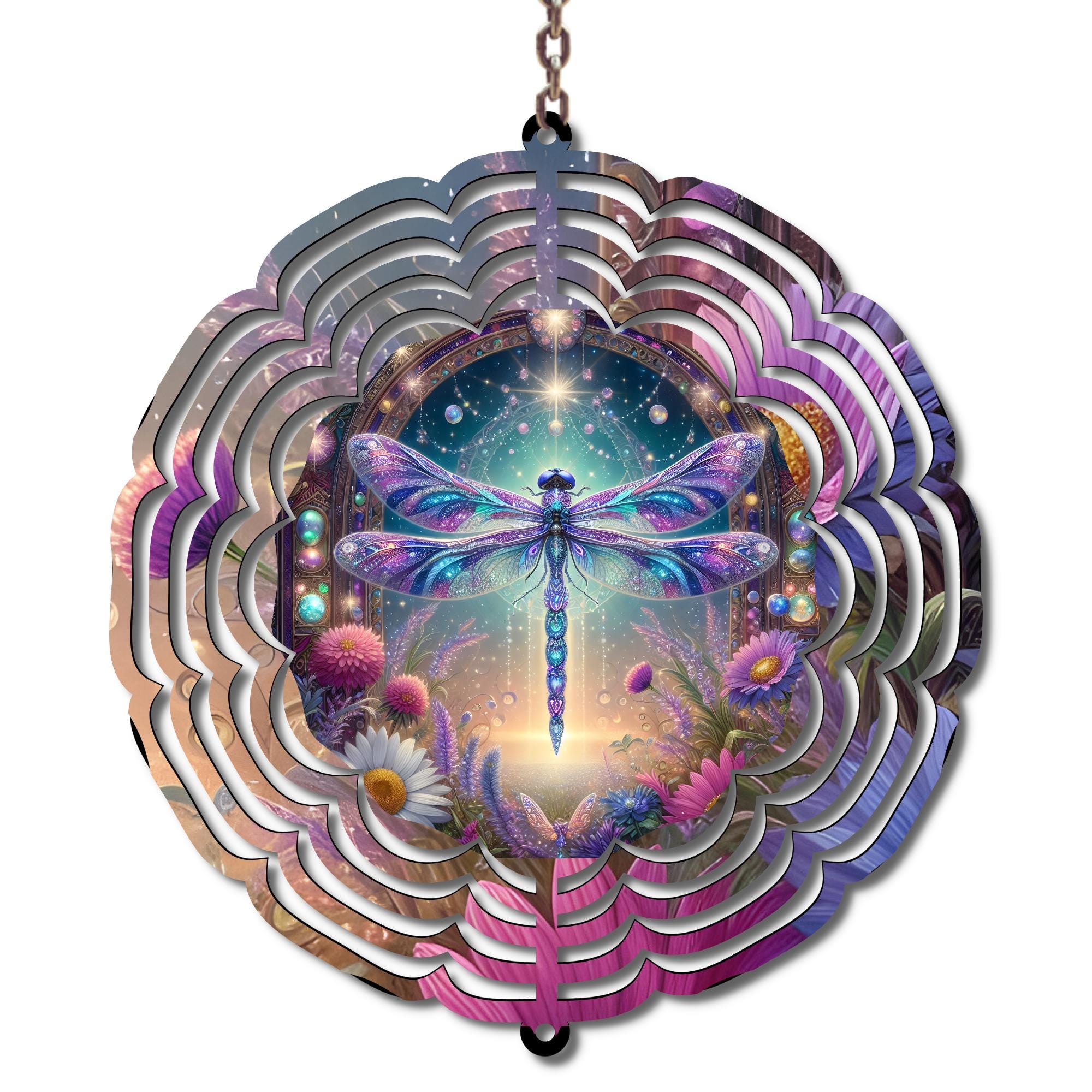 Bring a sense of magic, transformation, and beauty to your space with this stunning dragonfly wind spinner.