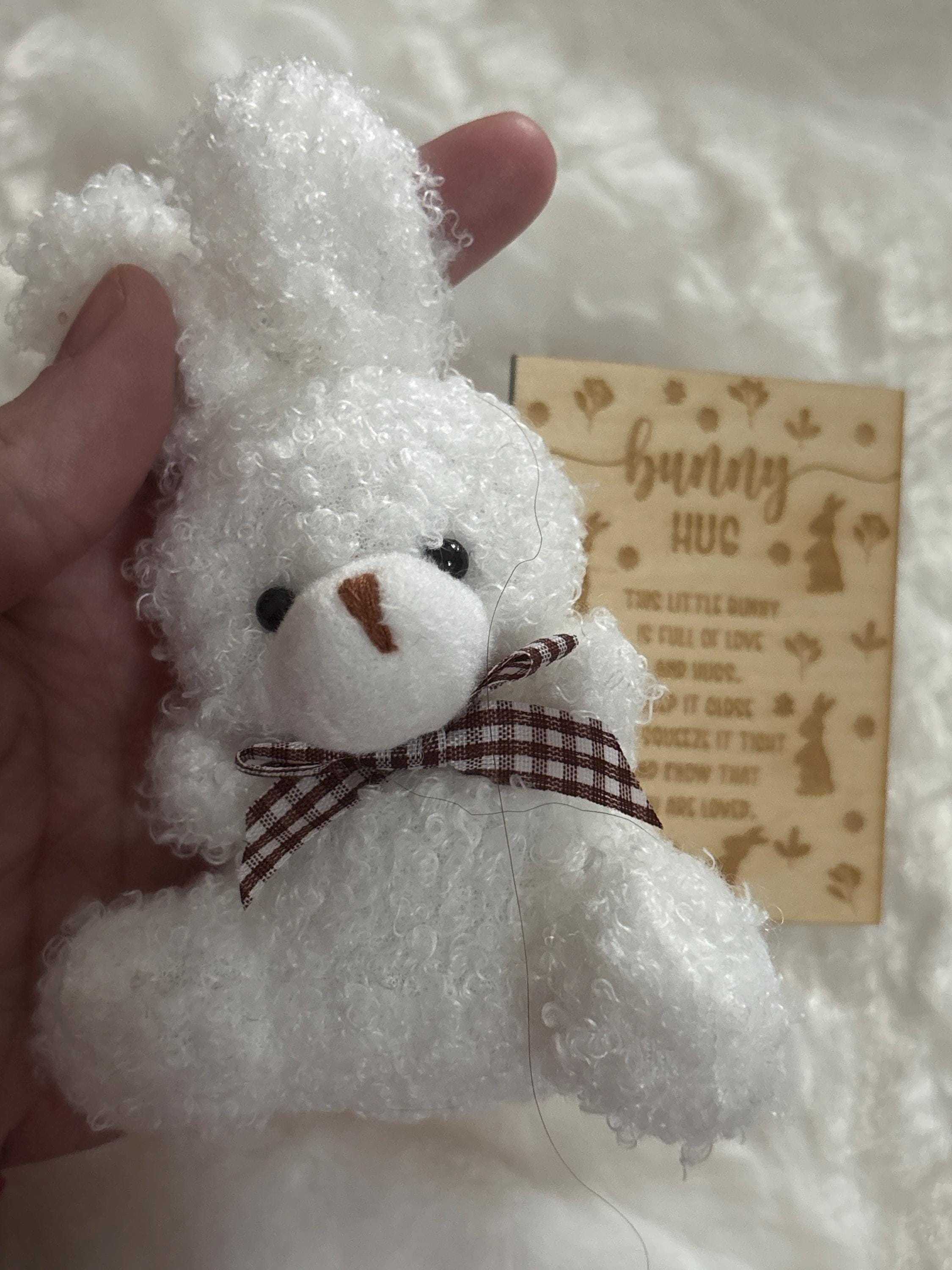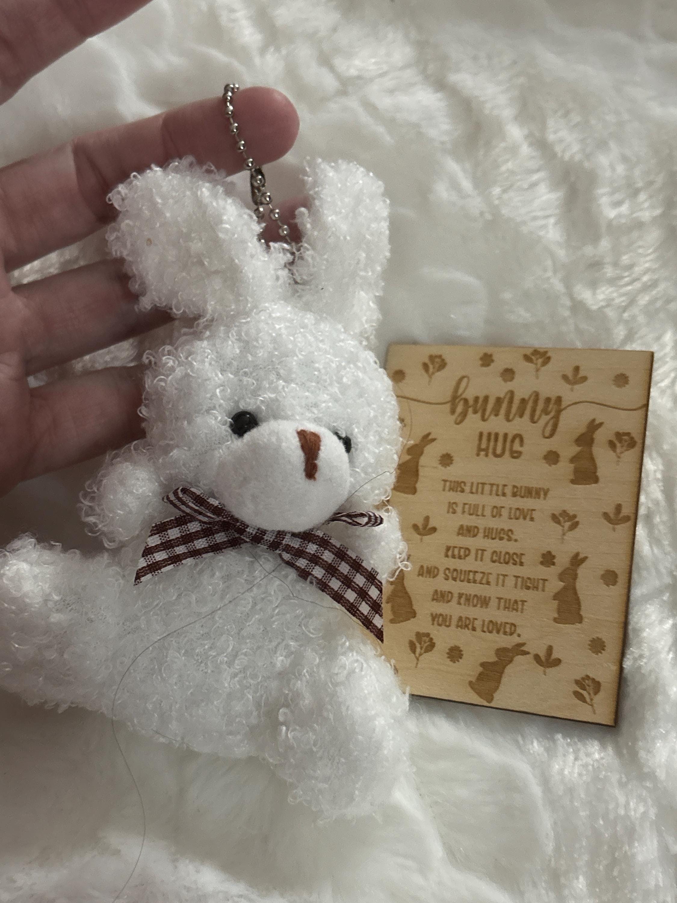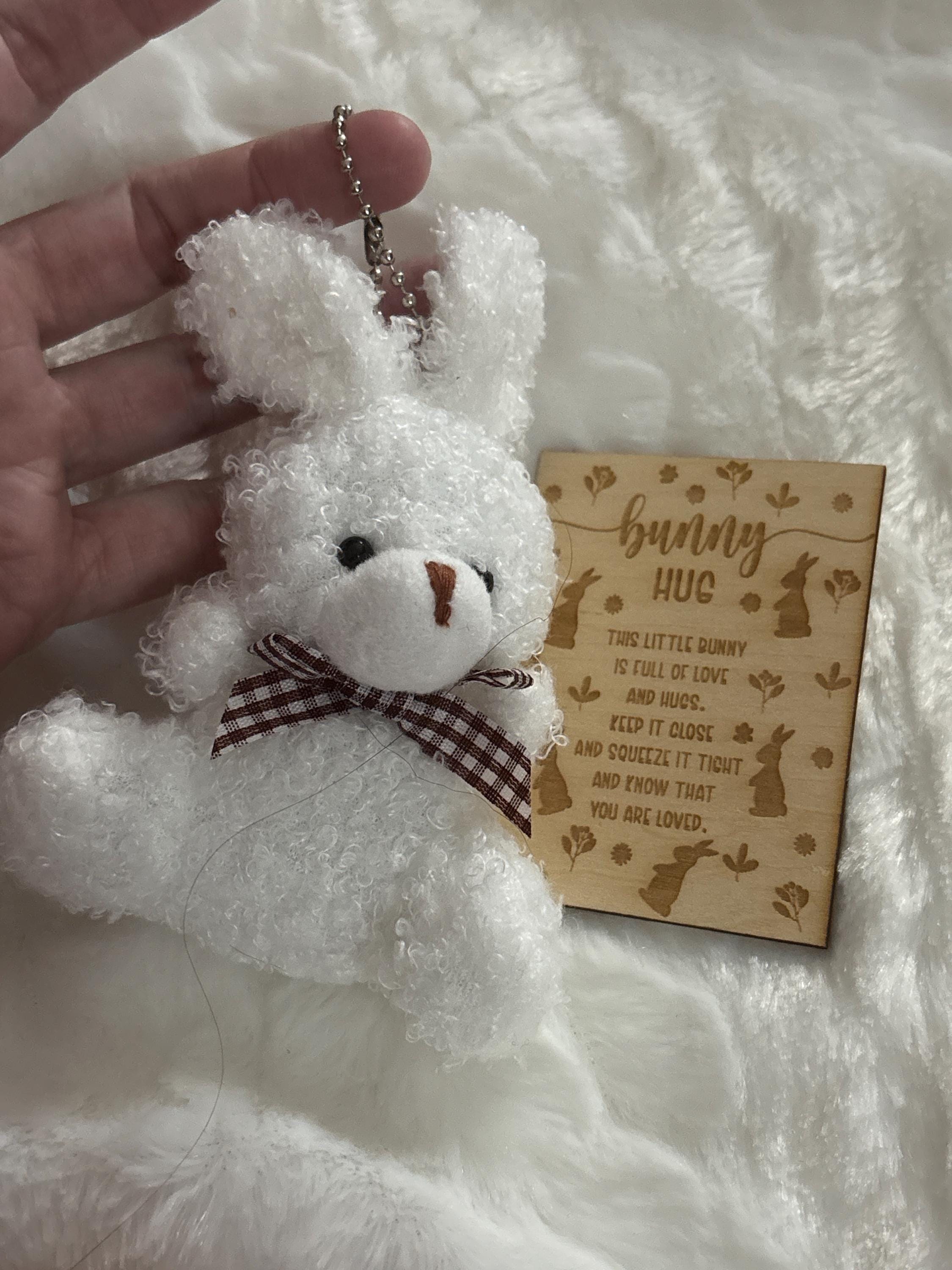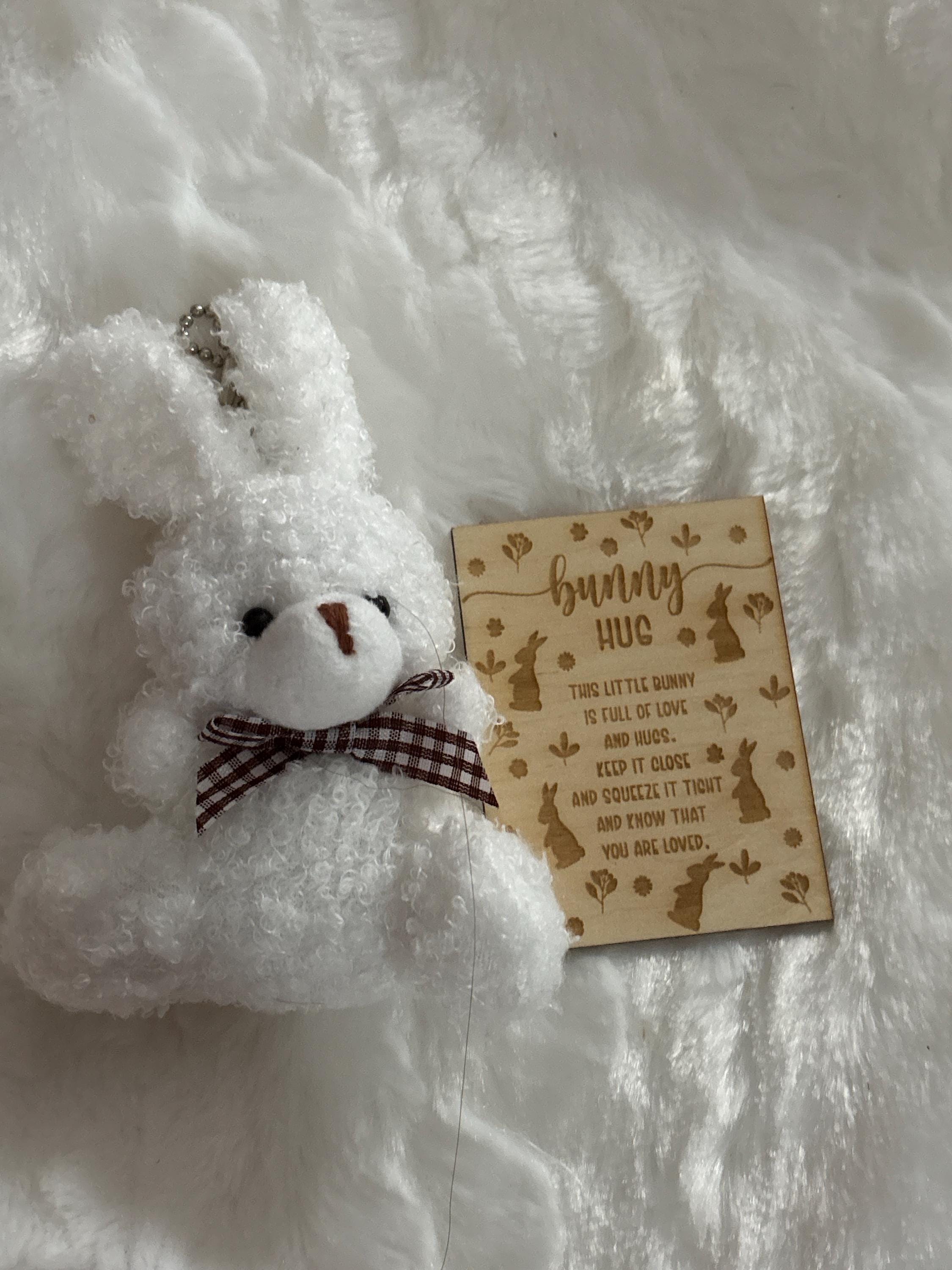 This sweet mini plush bunny comes with a wooden keepsake card featuring a heartfelt bunny hug poem, then arrives tucked in a pretty organza gift bag, ready to give.