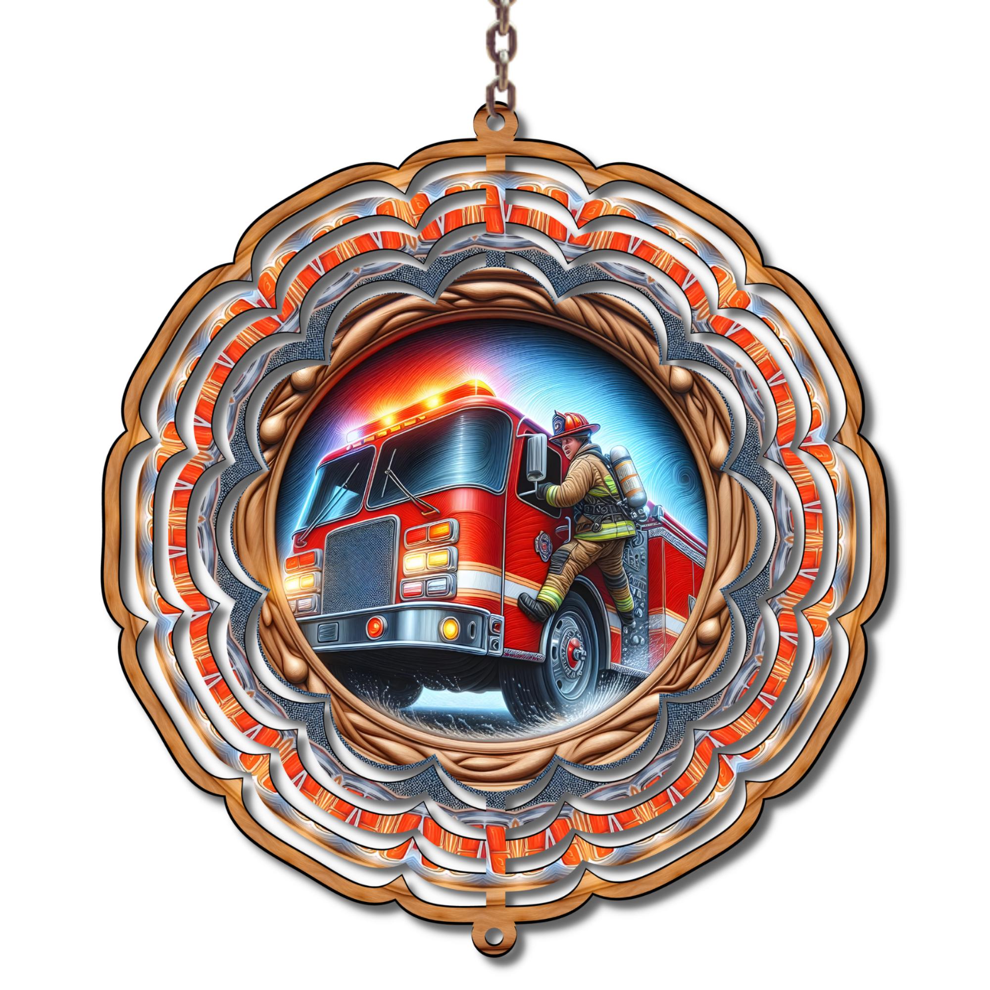 Celebrate the bravery and dedication of firefighters with this vibrant firefighter wind spinner. Featuring a detailed fire truck and firefighter design, this spinner creates a beautiful spinning effect in the breeze and makes a meaningful addition to any yard, garden, porch, or outdoor space.