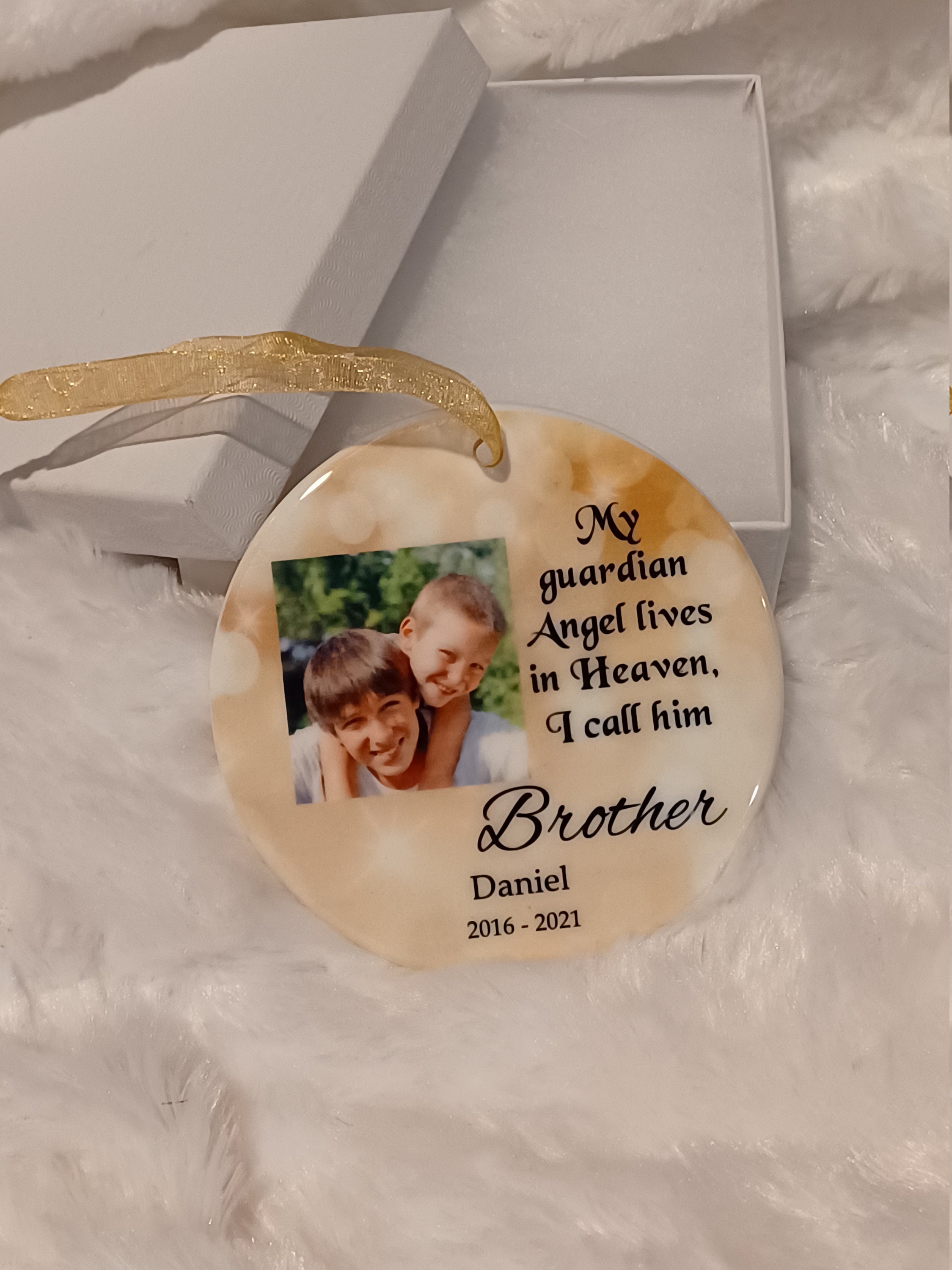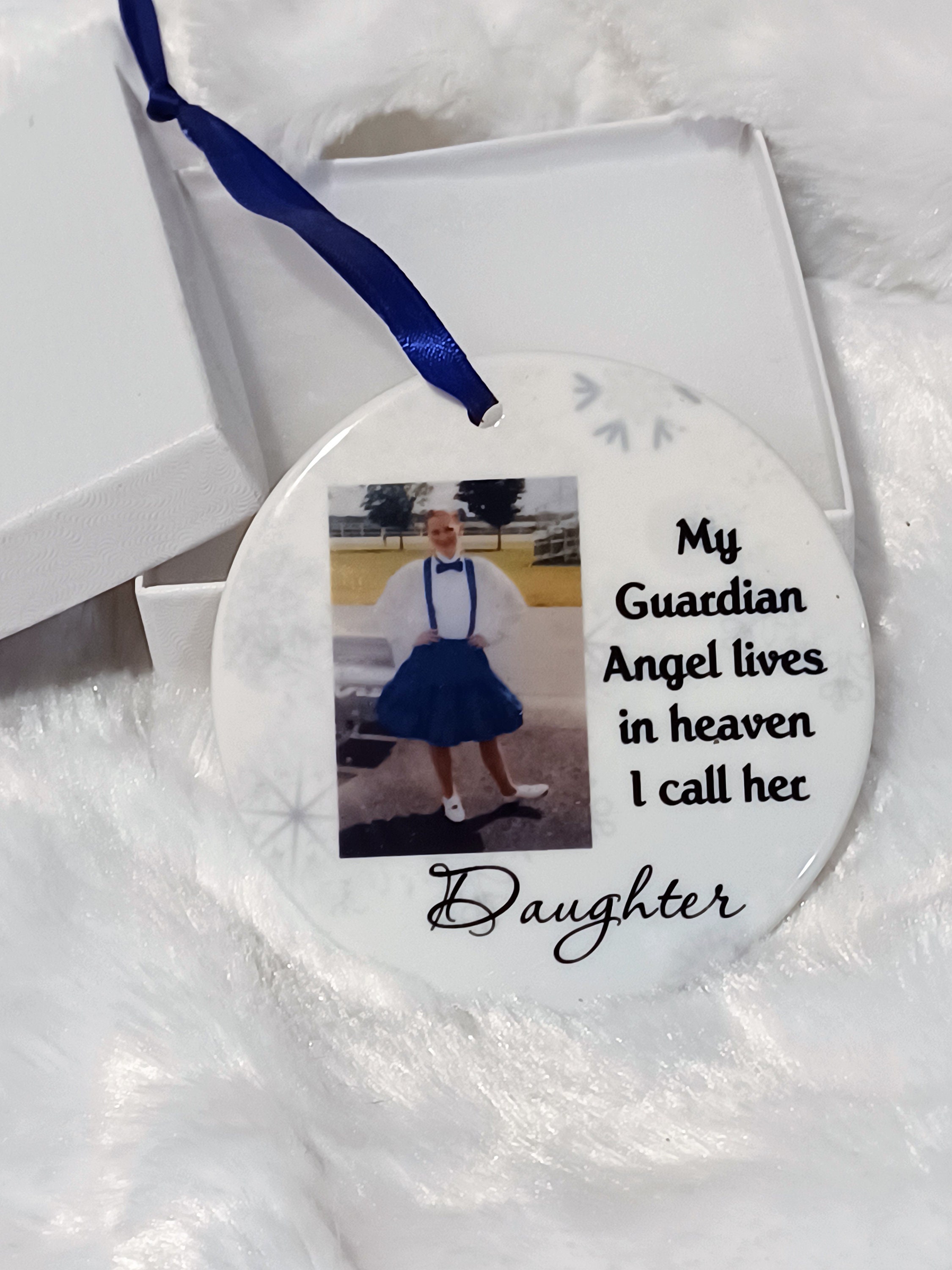 Let us help you with a special ornament. We can put a picture, date, or other graphics. We want to help make this a special ornament.