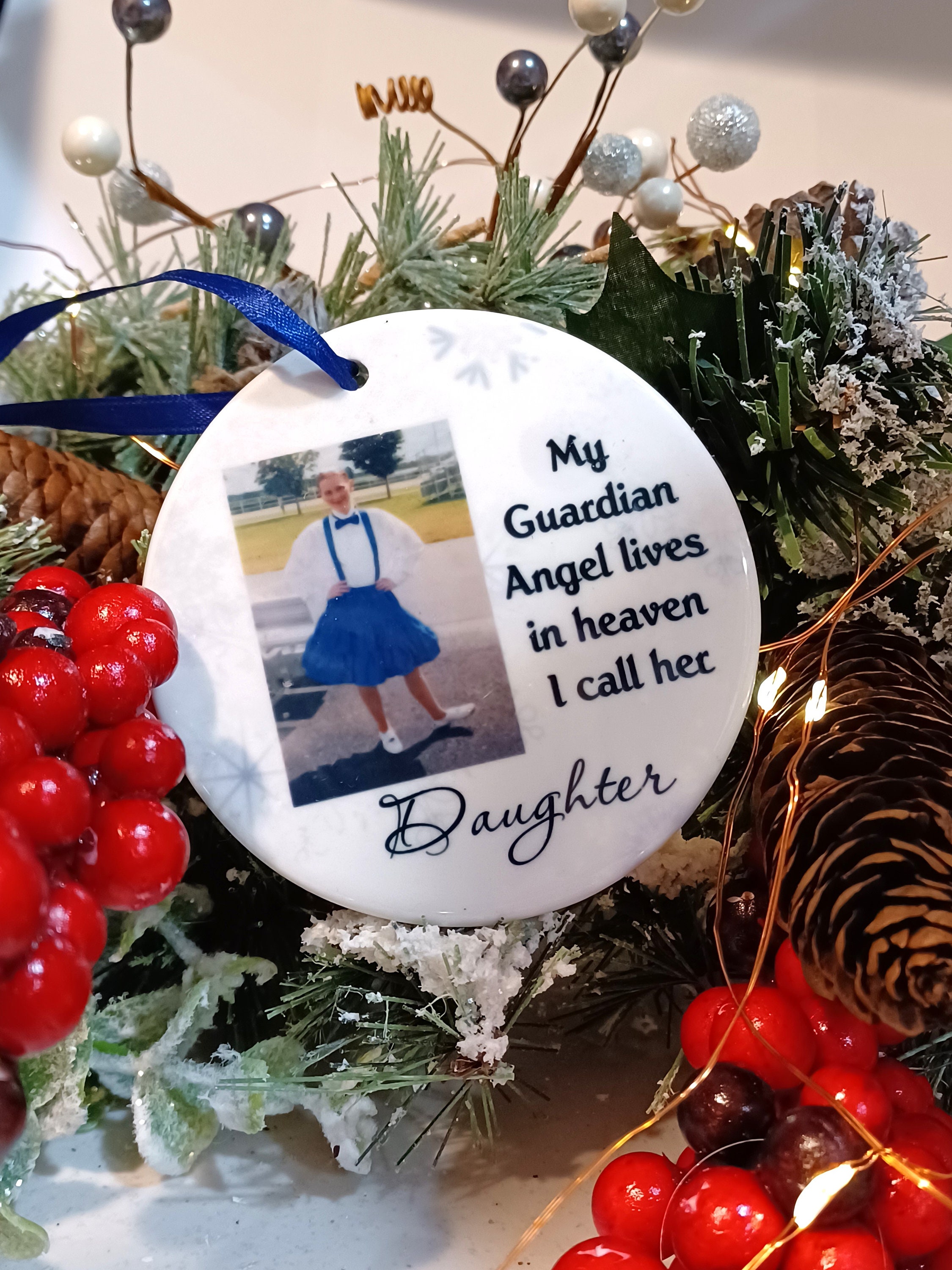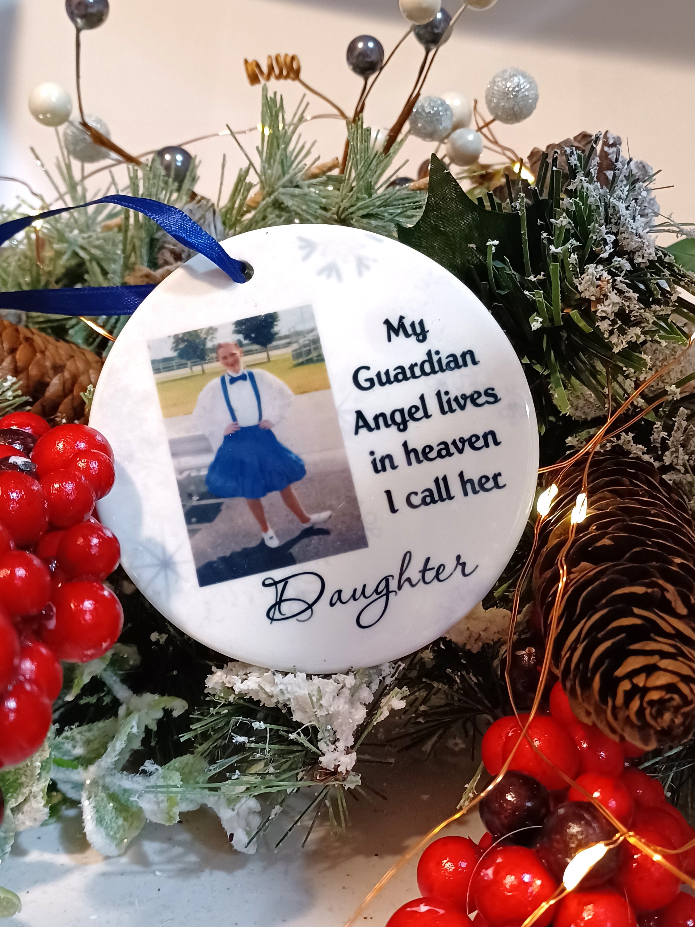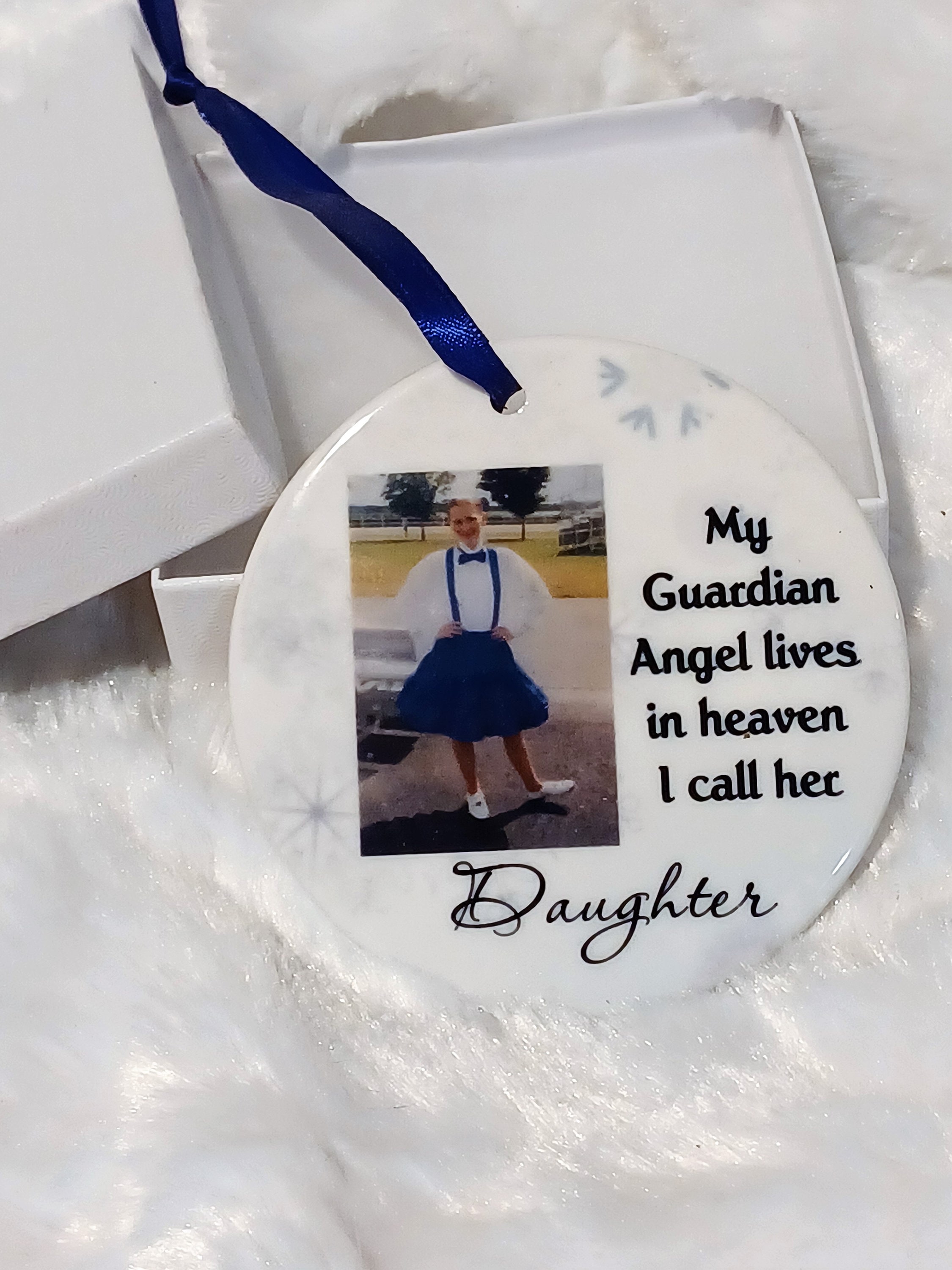 Let us help you with a special ornament. We can put a picture, date, or other graphics. We want to help make this a special ornament.