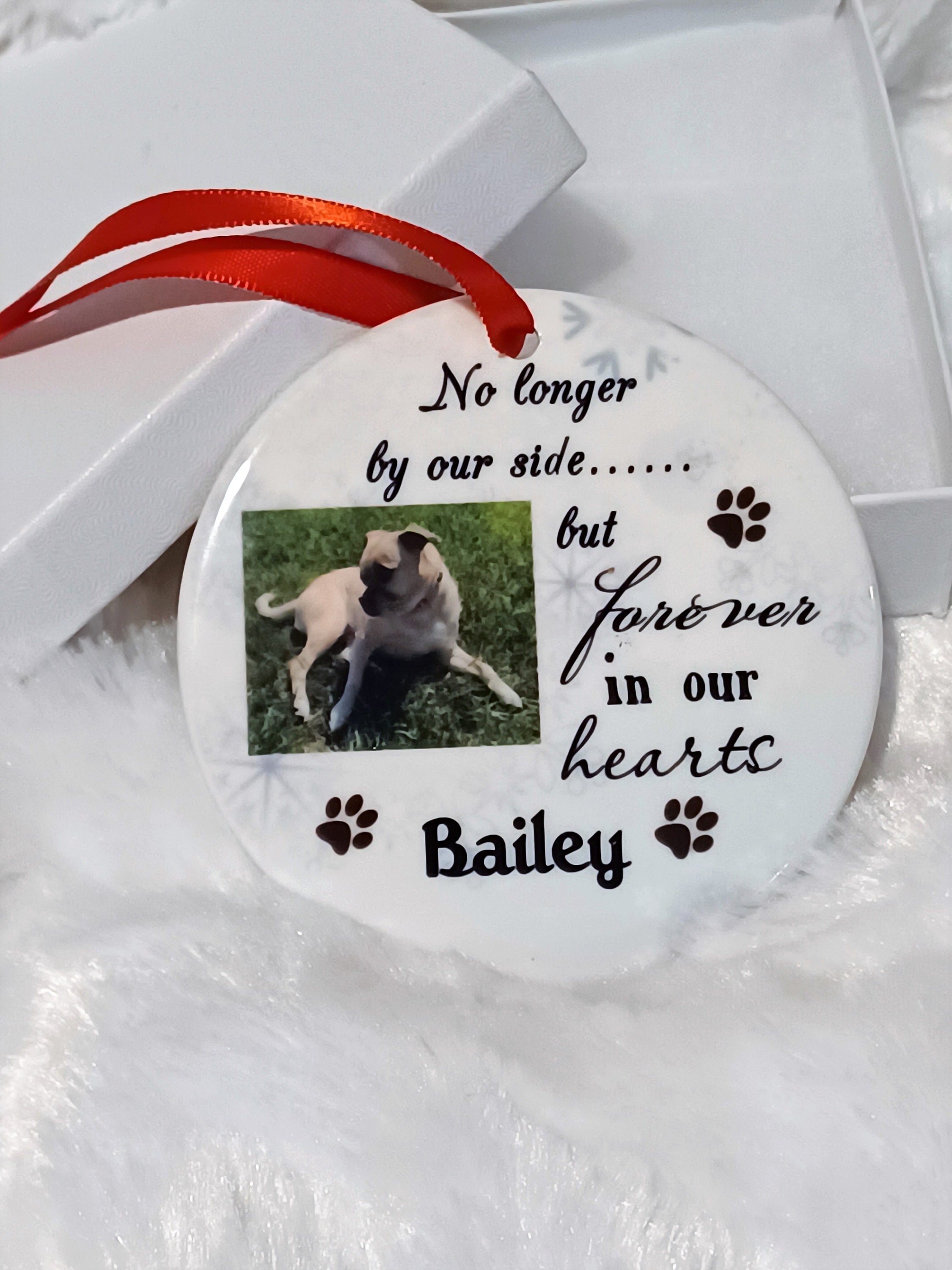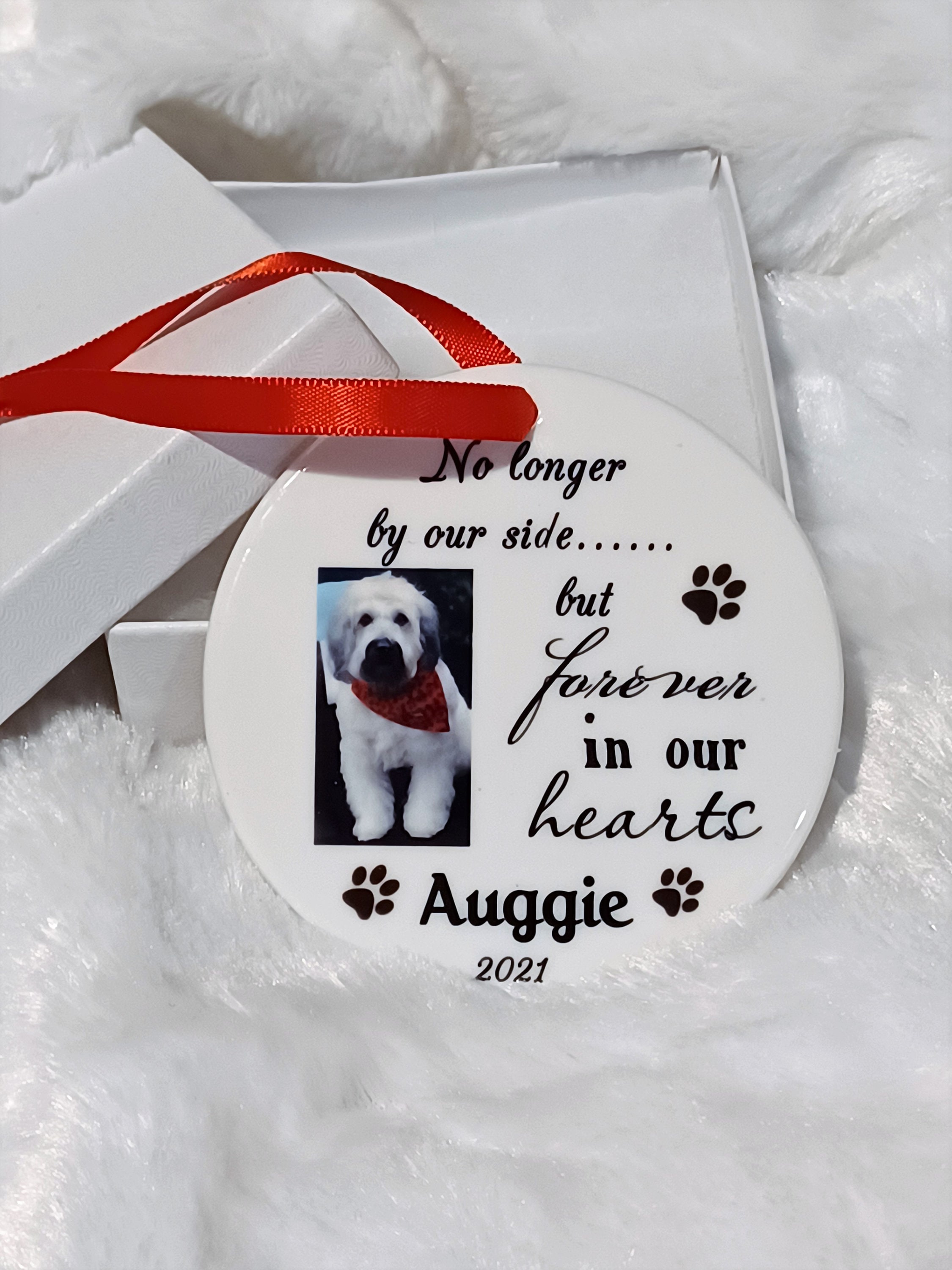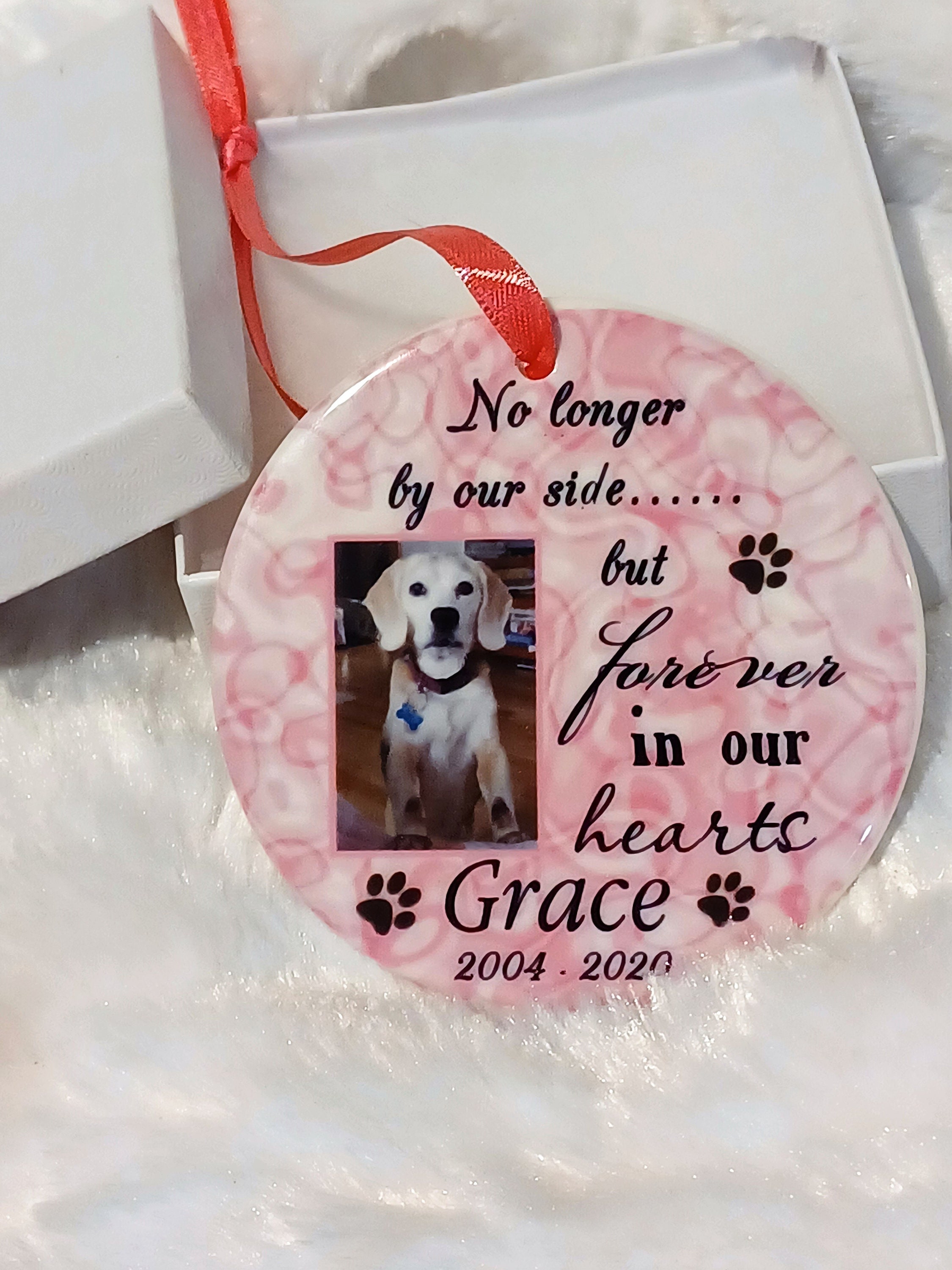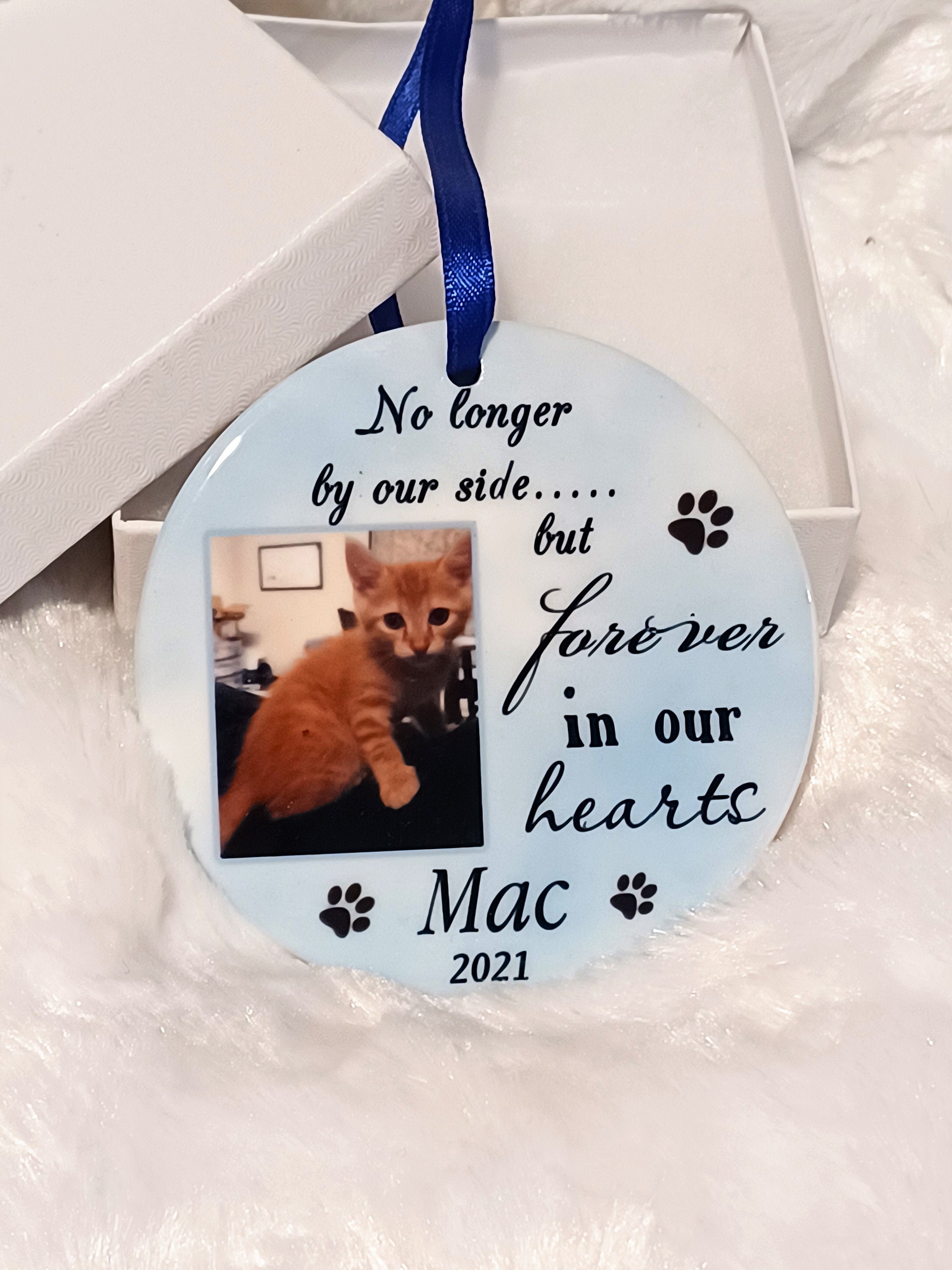 Our beautiful pet memorial ornament is a great way to remember that furry family member and forever friend. Especially during the holidays when you think of them. They will be there on your tree, watching over you.