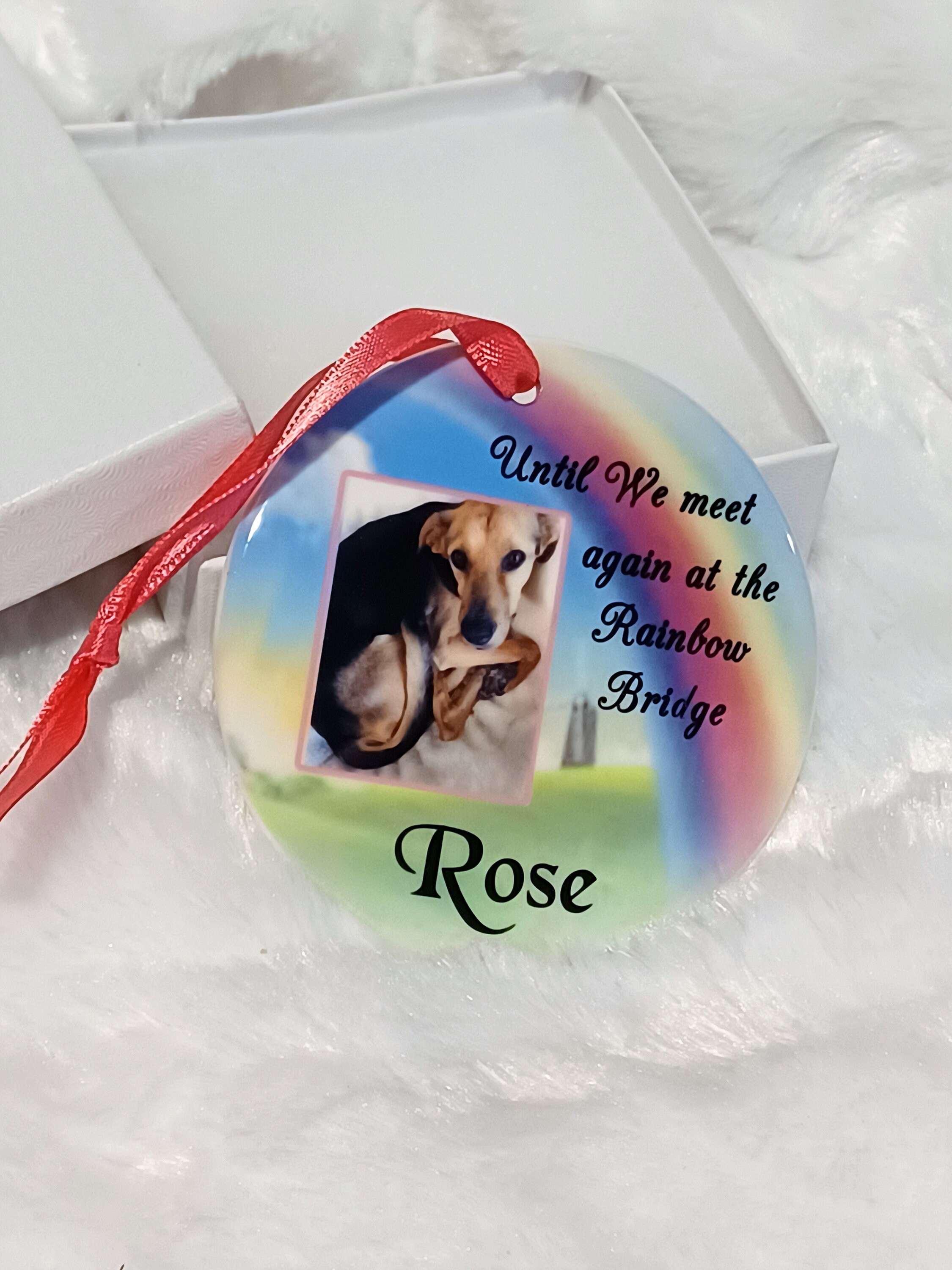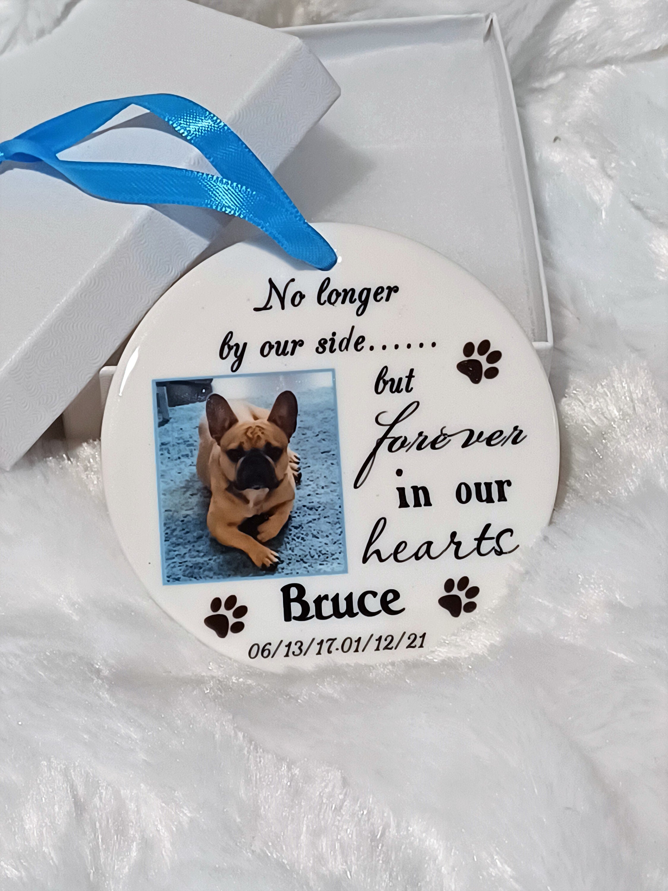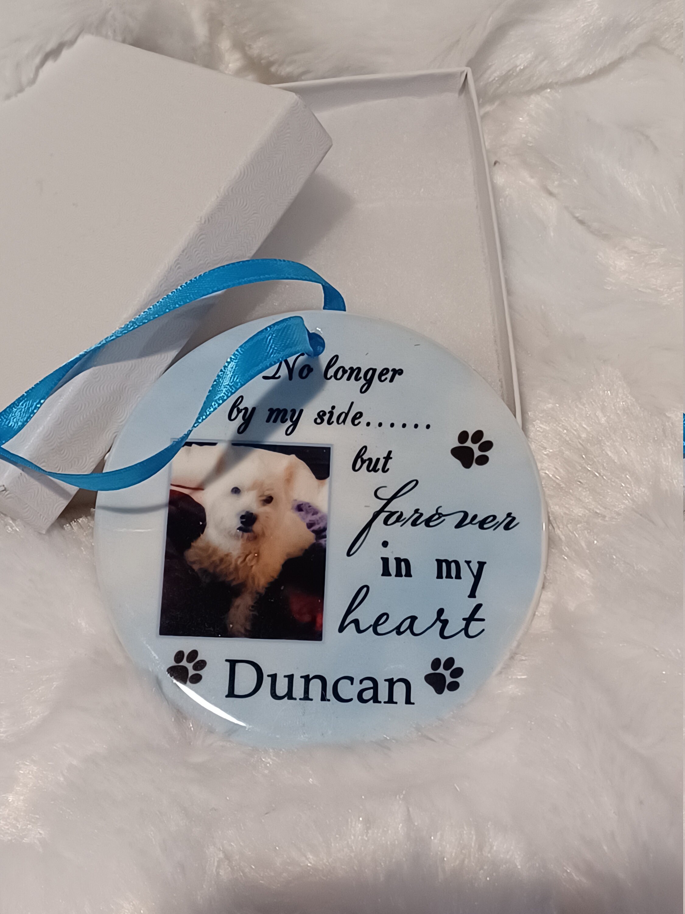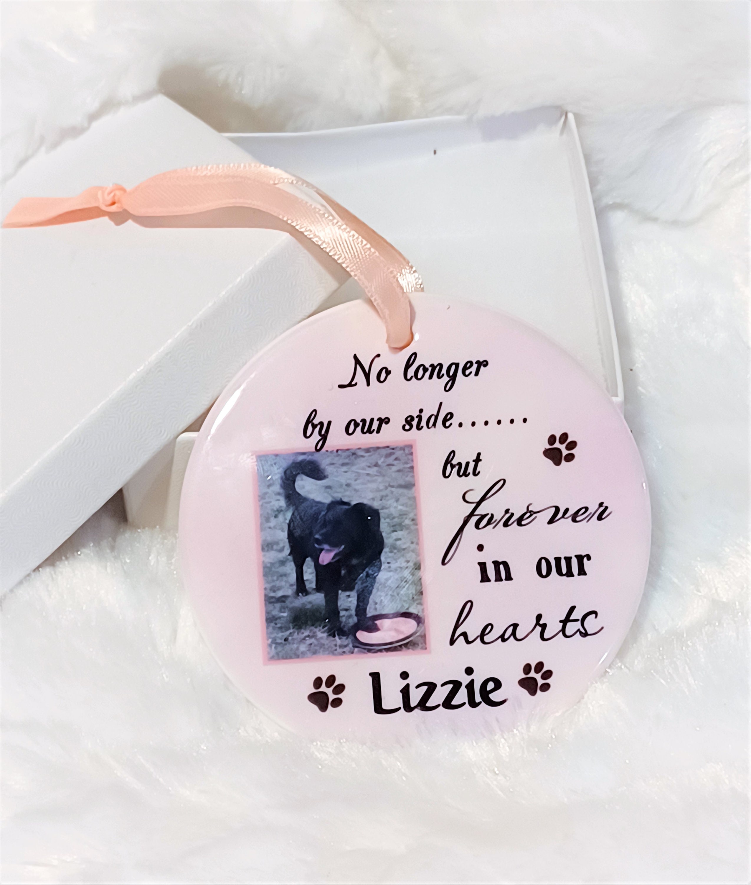Our beautiful pet memorial ornament is a great way to remember that furry family member and forever friend. Especially during the holidays when you think of them. They will be there on your tree, watching over you.